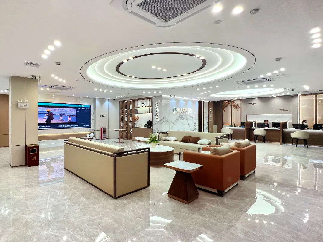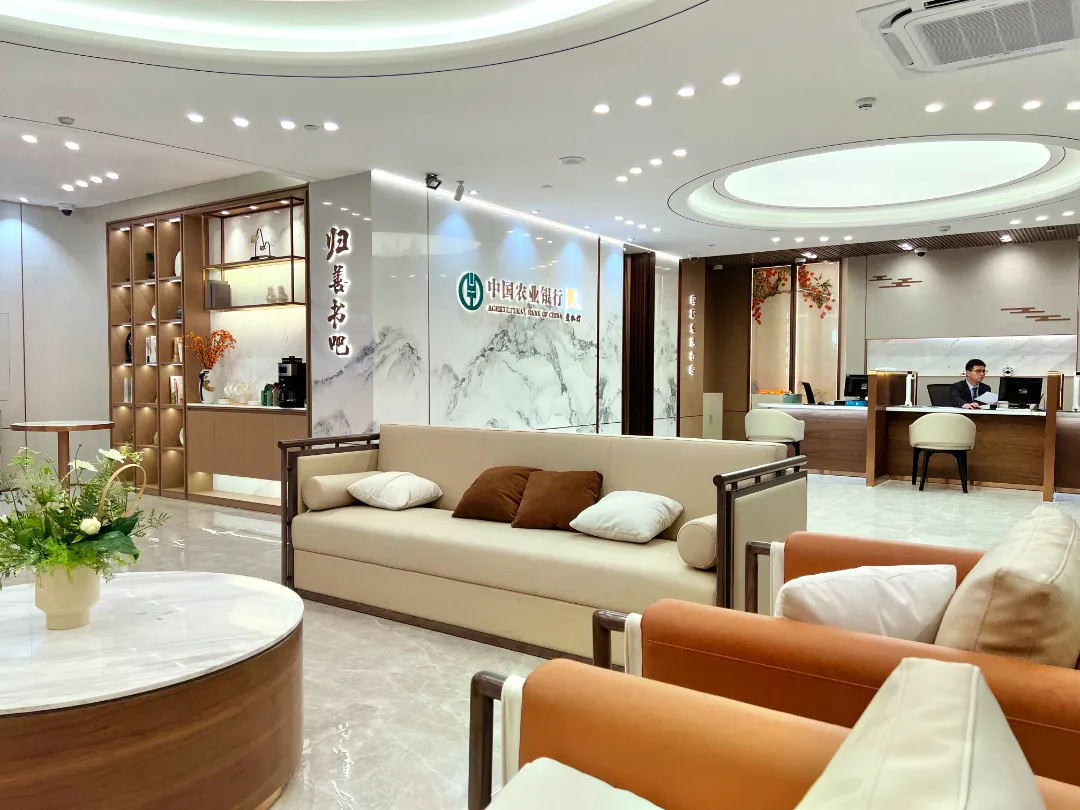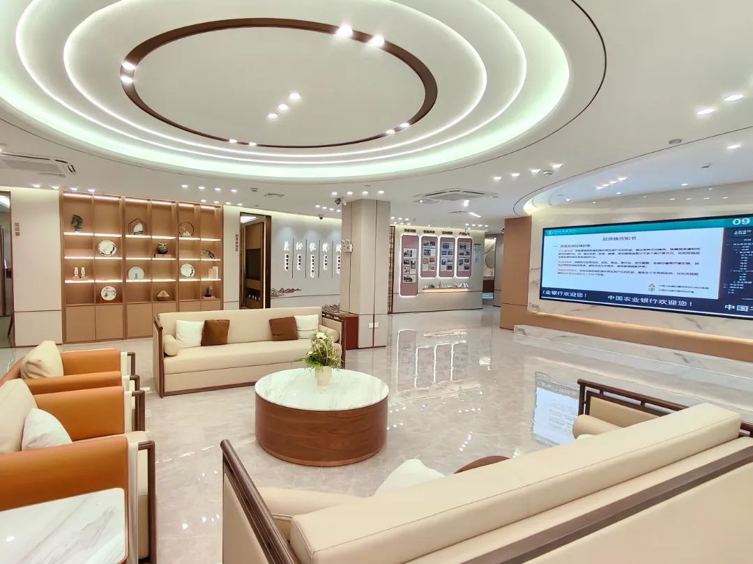 “壹私行”是中國農業銀行2020年發布的首個私人銀行專屬品牌,擁有自己全新的視覺形象,對場景建設有著較高的標準和要求。HJC黄金城深圳運營中心惠陽項目部根據項目實際情況,突出當地特色,追求深度體驗感和超越傳統的空間營造,打造更具時尚感、符合現代消費理念的服營場景。